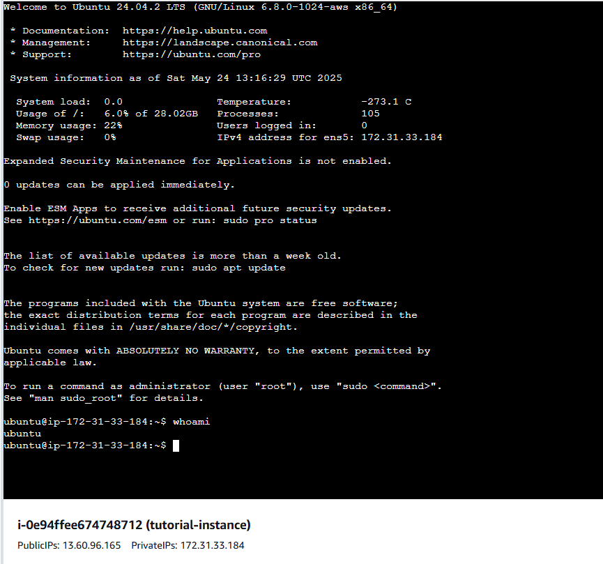 And just like that, you'll be logged into your EC2 virtual machine shell interface.