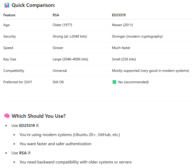 Note that the selection to be made, is affected by both the machine you'll be connecting from, and the VM to be created. Our instance(VM) to be created, is a modern server, and I believe your local machine is not an 'old-lady' either, so ED25519 - since it's more modern and secure, should do.