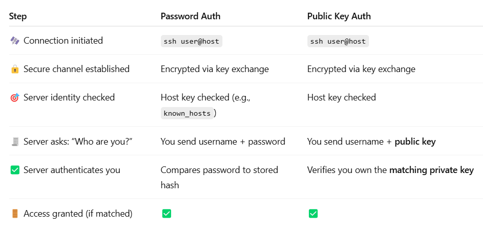 Image: an image showing the difference between password and public key SSH auth methods(https://chatgpt.com).