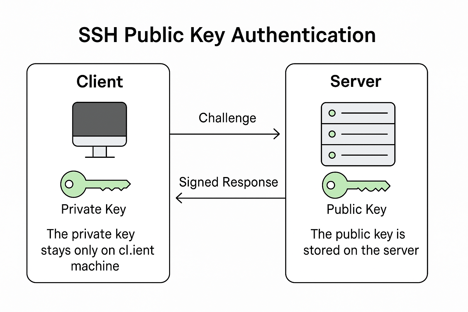 If the response validates correctly, it means the client holds the matching private key, so the server grants access. Otherwise, the connection is rejected.