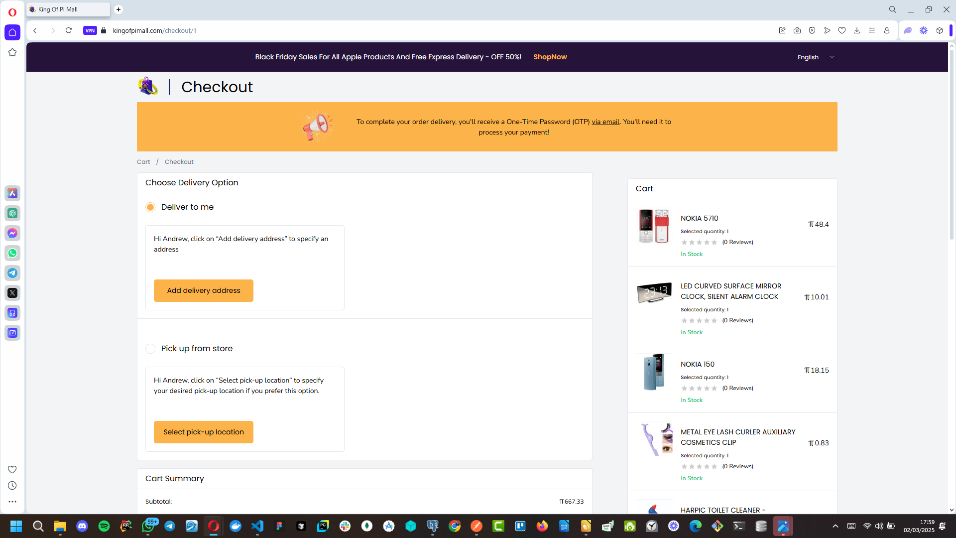 Image: a screenshot of the checkout page on the user-facing(mall front) section
