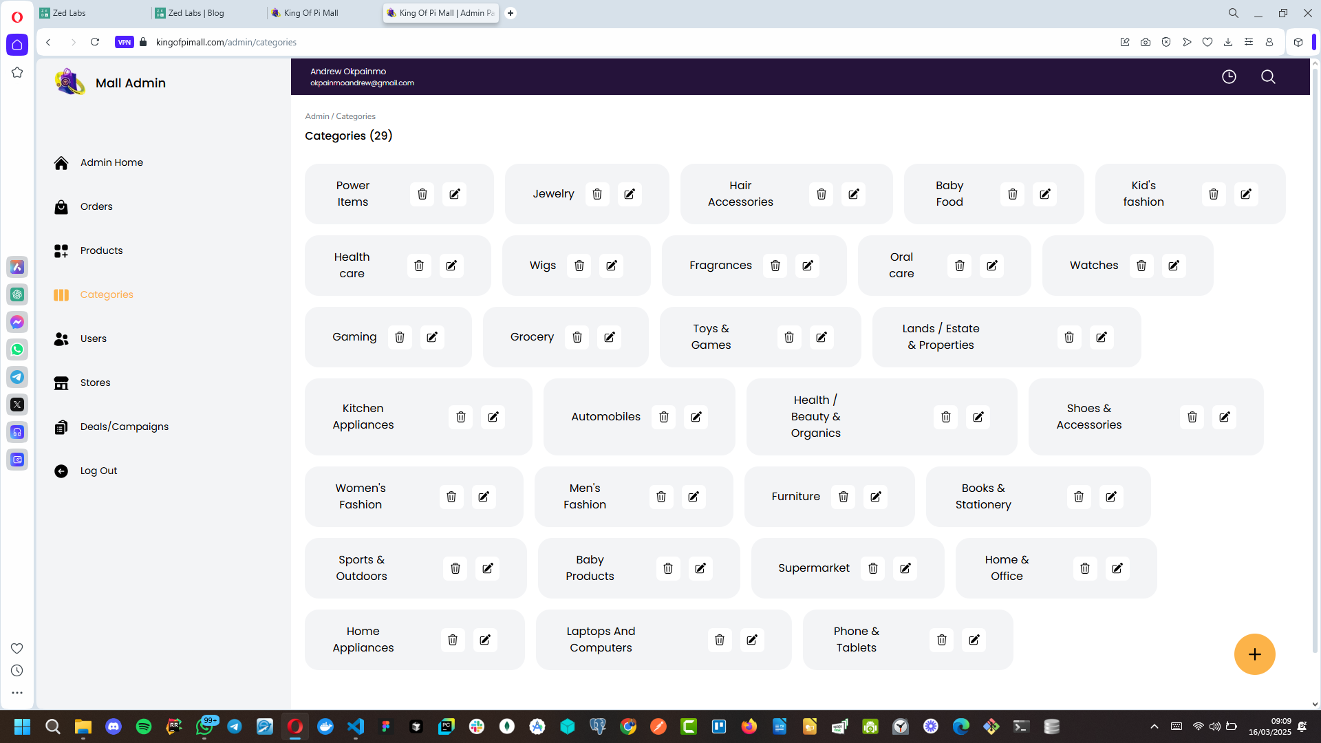 Image: a screenshot of the categories page on the user-facing(mall front) section