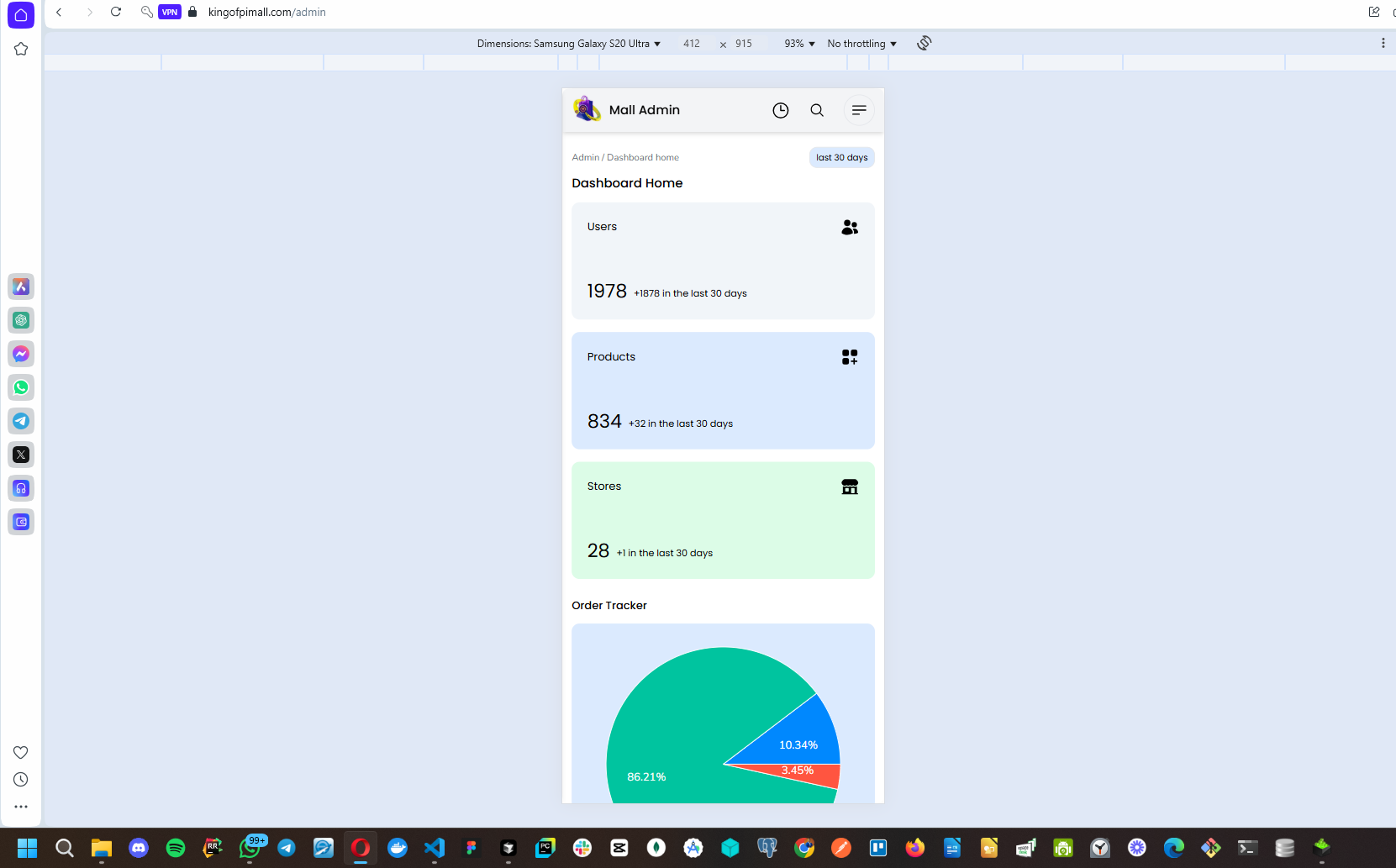 Image: a screenshot of the main home screen on the admin section - showing mobile screen responsiveness