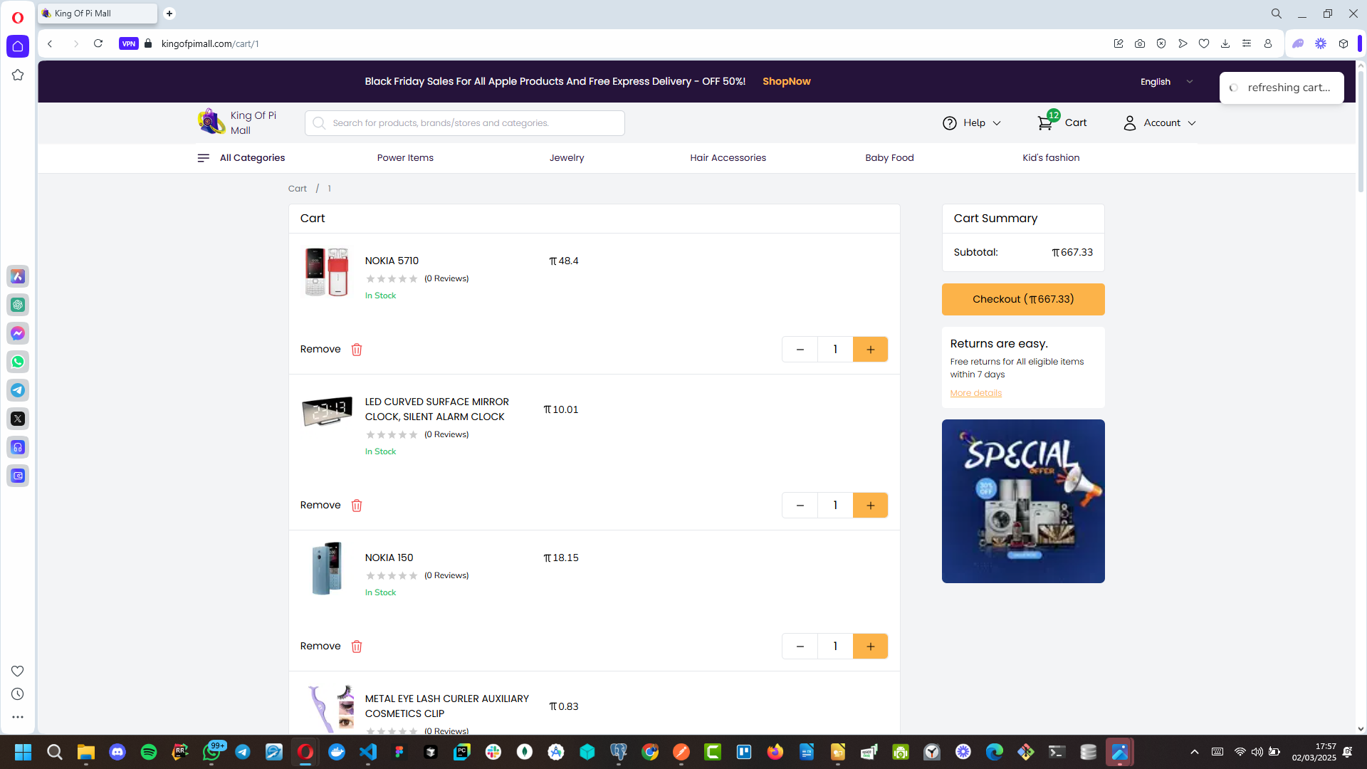 Image: a screenshot of the cart page on the user-facing(mall front) section