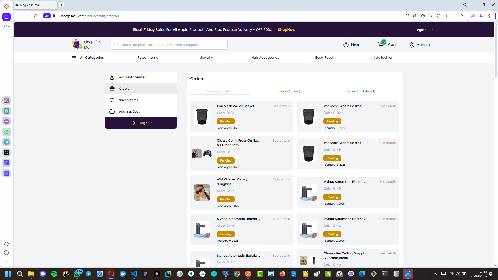 Image: a screenshot of user-orders page on the user-facing(mall front) section